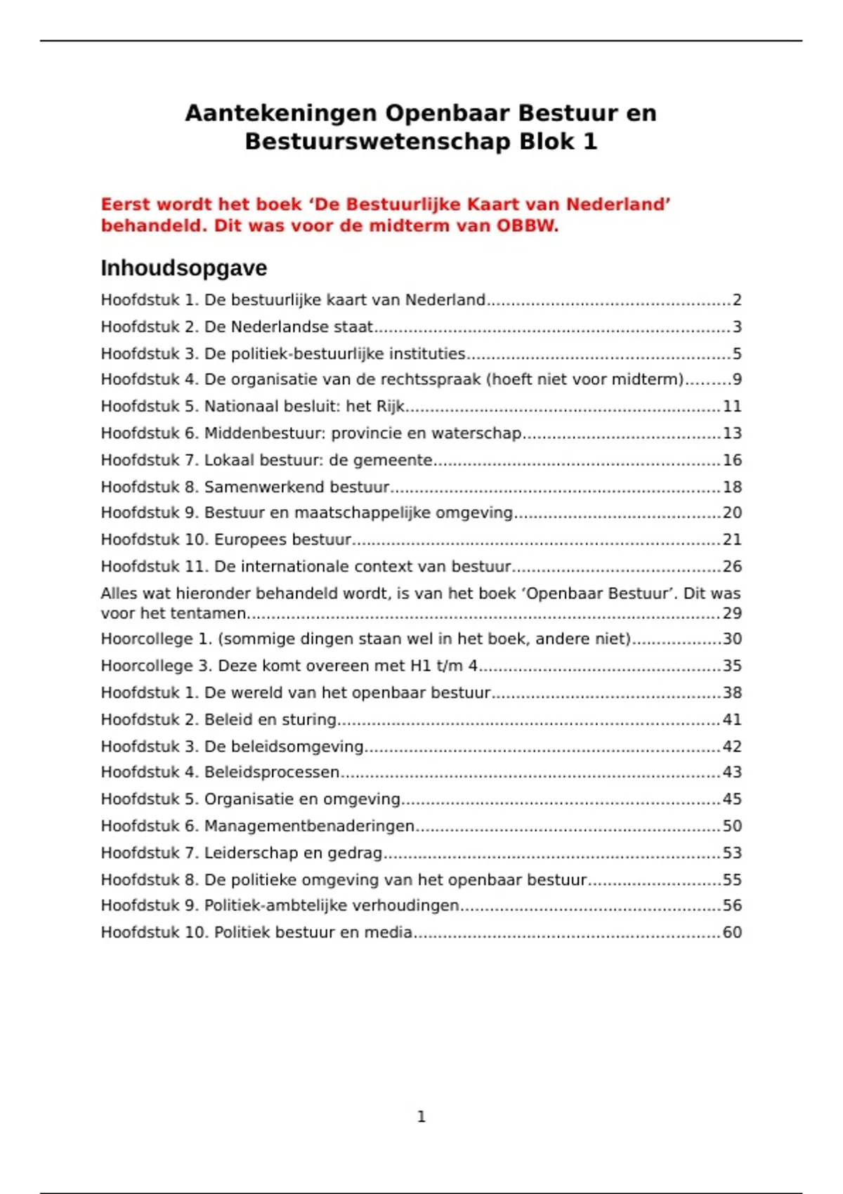 Alles wat hieronder behandeld wordt, is van het boek ‘Openbaar Bestuur’. Dit was