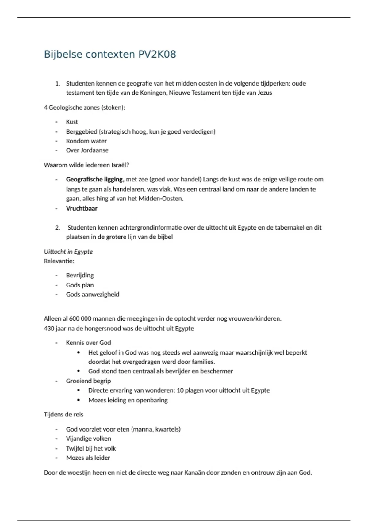 Samenvatting Bijbelse Contexten (PV2K02) pabo 2