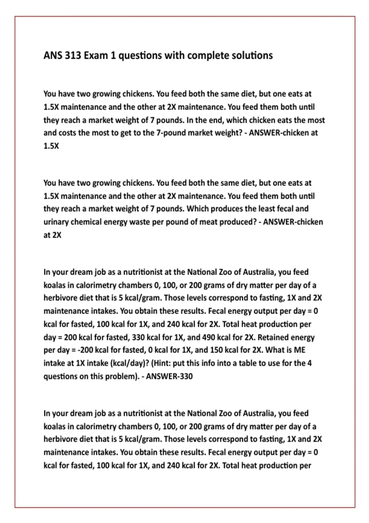 maintenance intakes. You obtain these results. Fecal energy output per day = 0