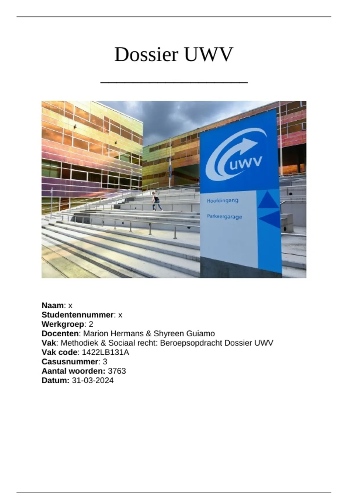 Vak: Methodiek & Sociaal recht: Beroepsopdracht Dossier UWV
