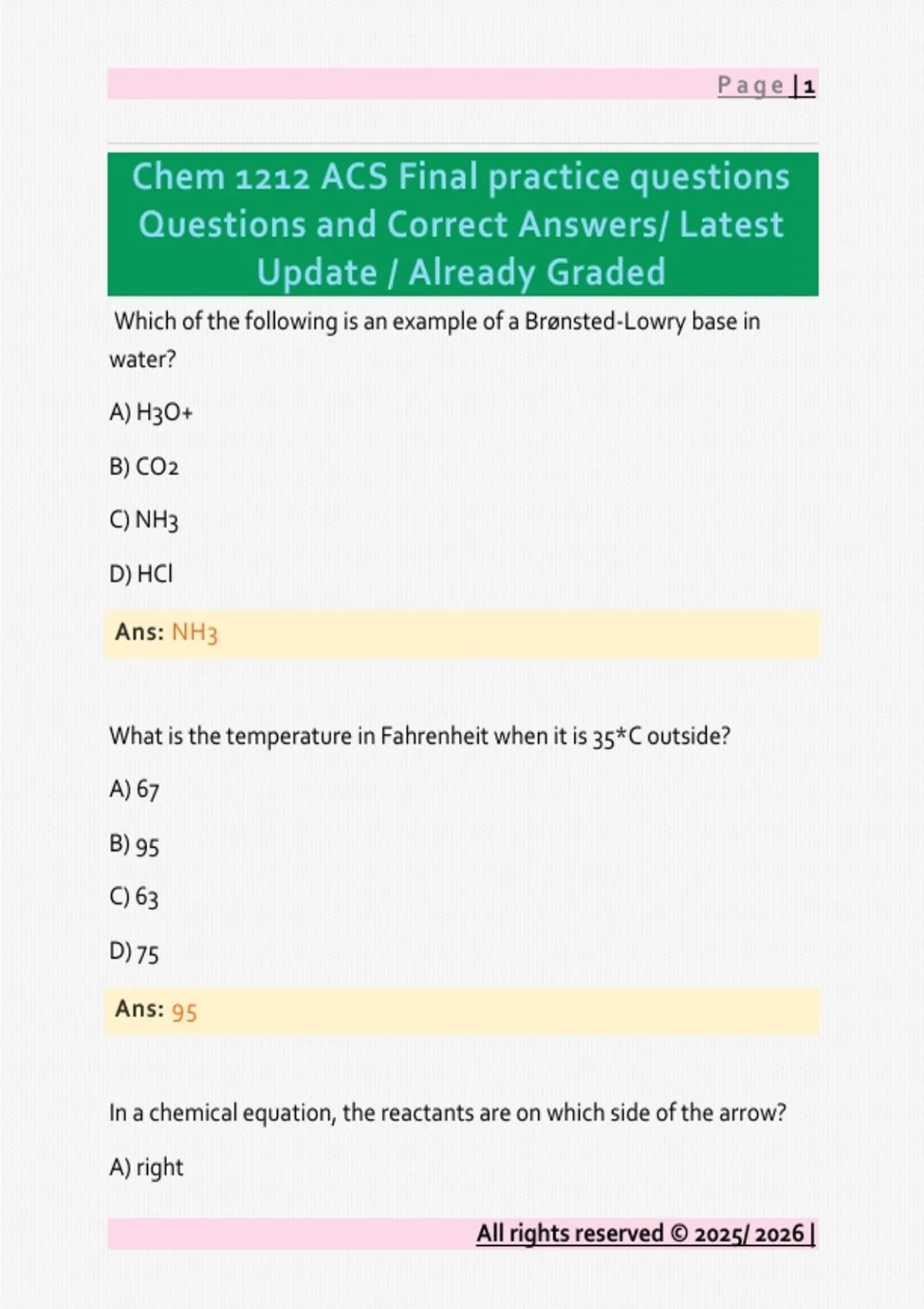 Chem 1212 ACS Final practice questions