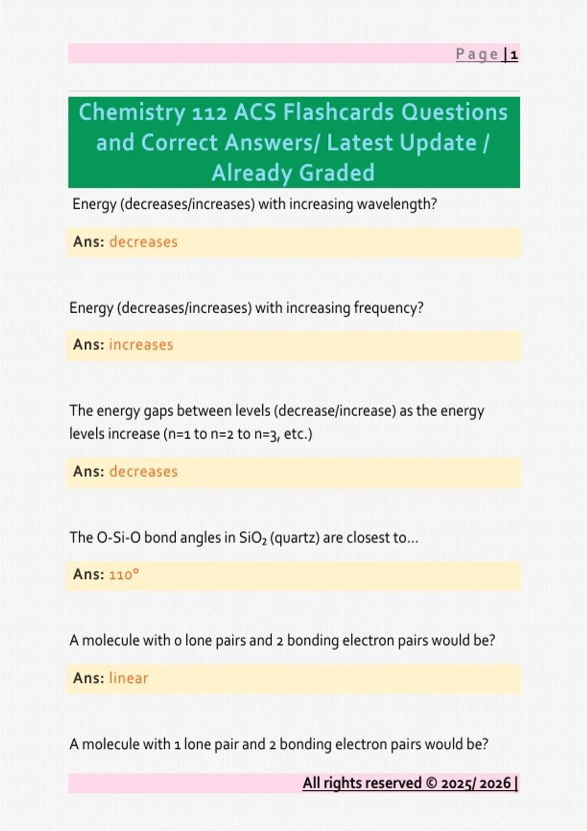 Chemistry 112 ACS Flashcards Questions