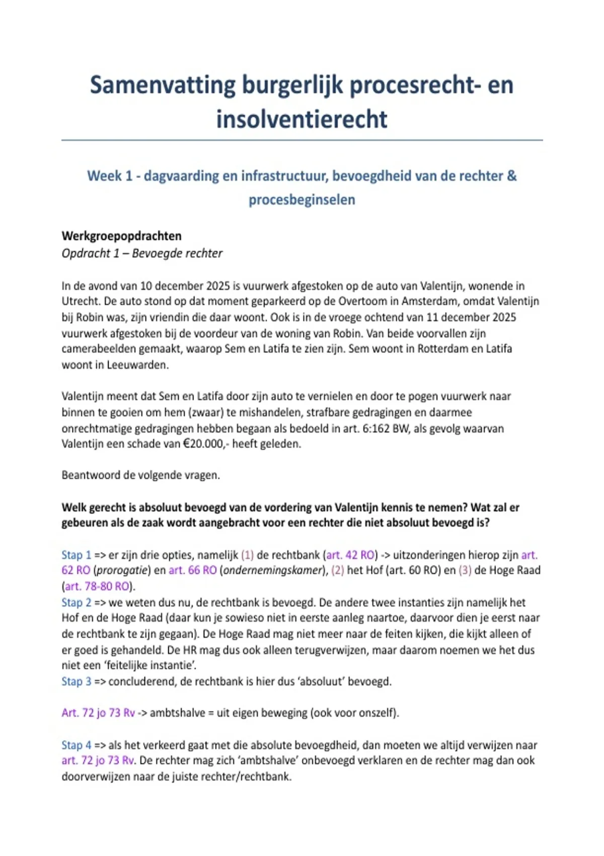 Week 1 - dagvaarding en infrastructuur, bevoegdheid van de rechter &