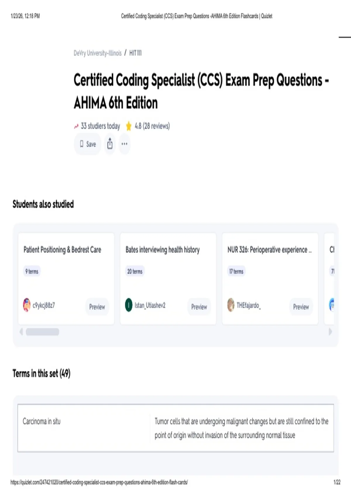 https://quizlet.com/247421020/certified-coding-specialist-ccs-exam-prep-questions-ahima-6th-edition-flash-cards/ 1/22