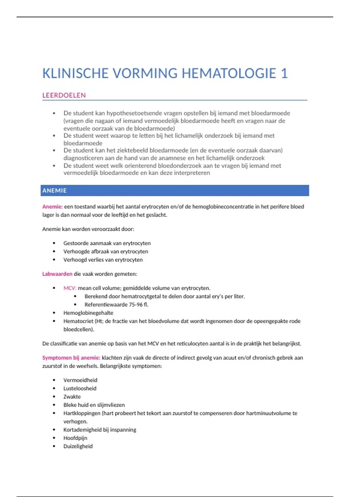 MPA Samenvatting Hematologie