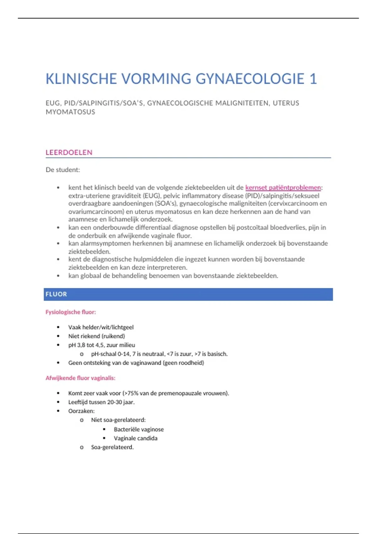 KLINISCHE VORMING GYNAECOLOGIE 1