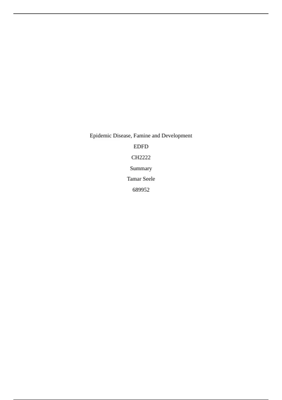 , Week 1: epidemics, famines, development…