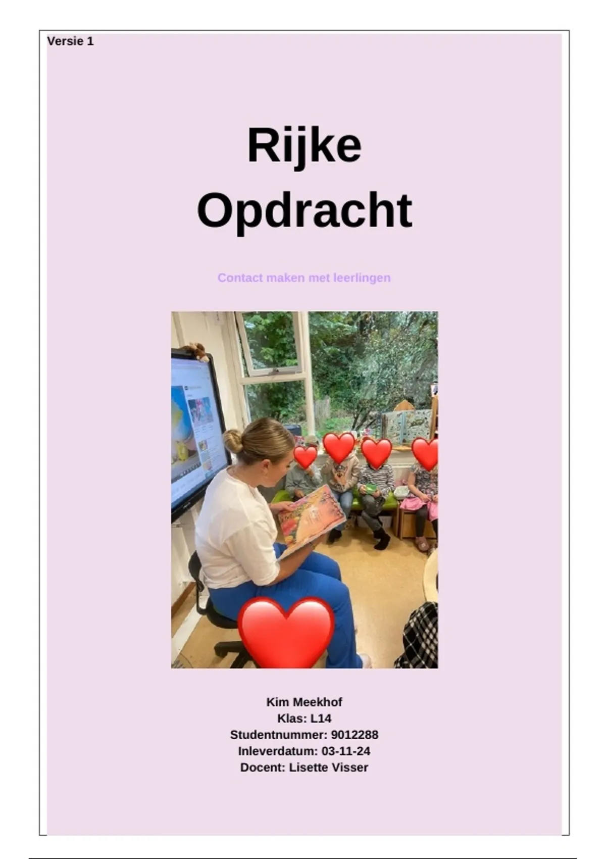 Deze Rijke Opdracht ging over 'contact maken met leerlingen'. Dit verslag heb ik gebaseerd op mijn stage klas groep 5/6. Ik heb het gemaakt voor BT 1 periode 1.