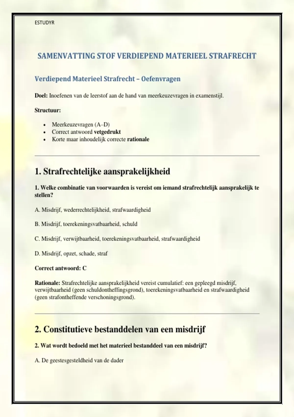 Verdiepend Materieel Strafrecht – Oefenvragen