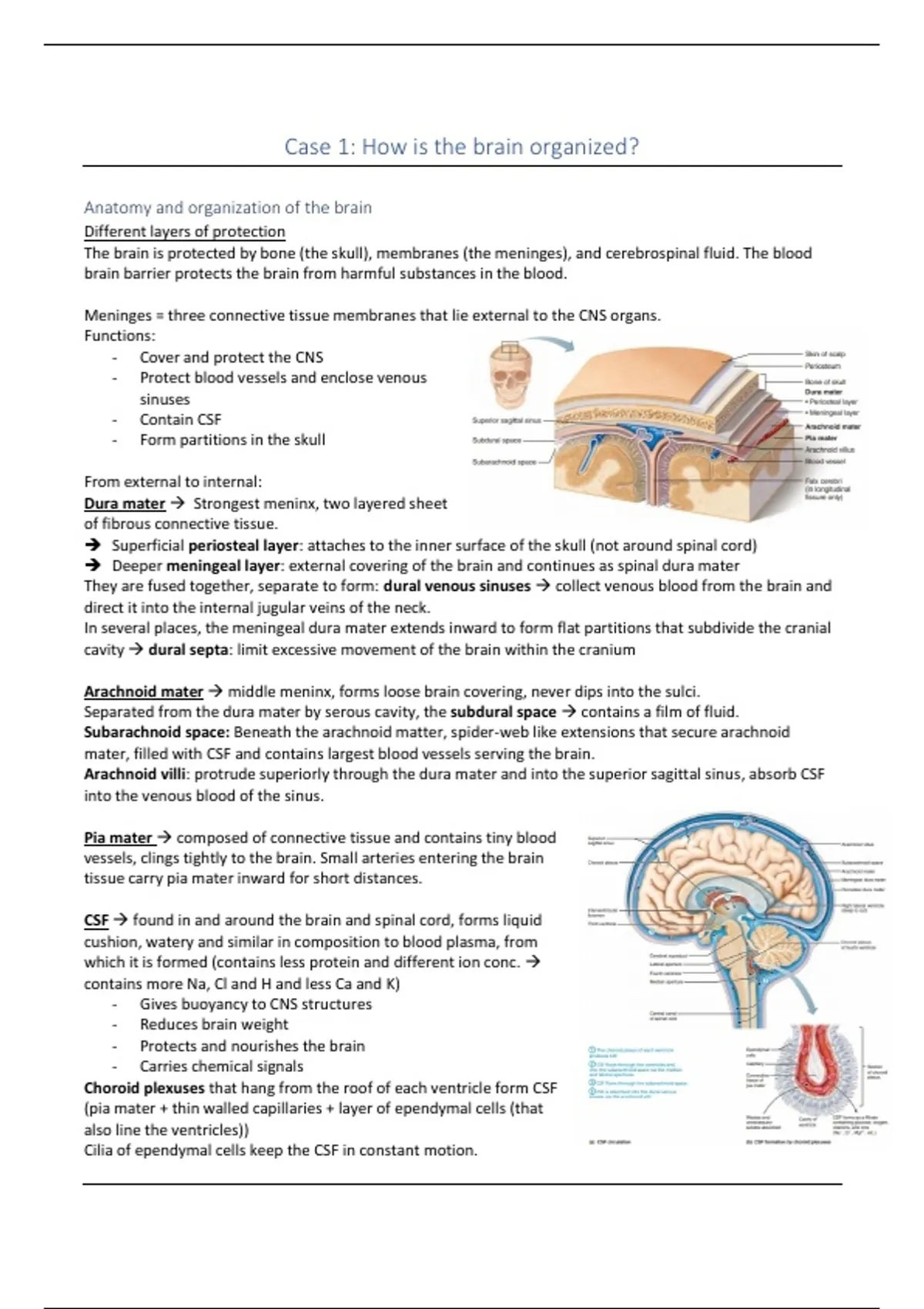 Dura mater → Strongest meninx, two layered sheet