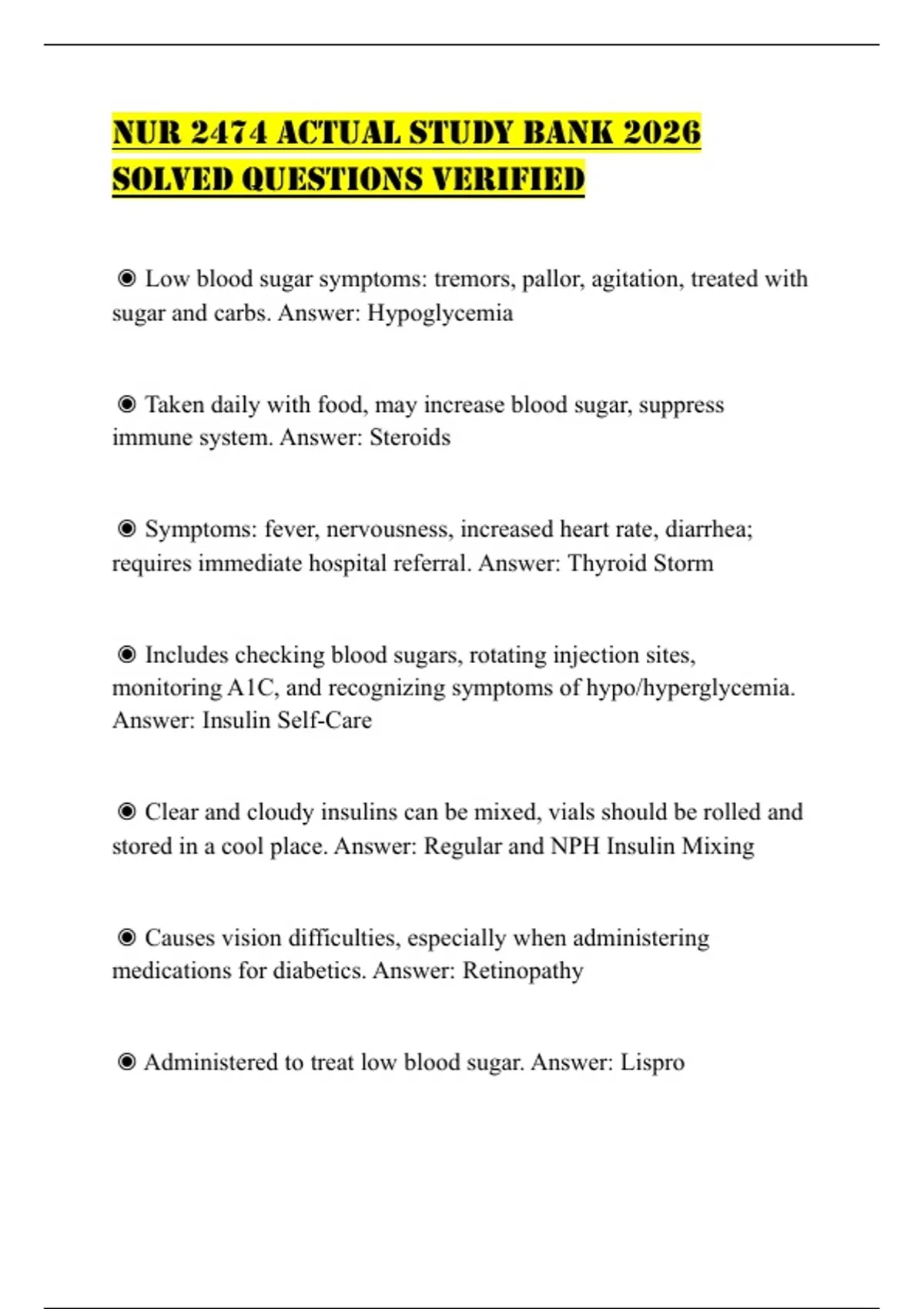 NUR 2474 ACTUAL STUDY BANK 2026 SOLVED QUESTIONS VERIFIED