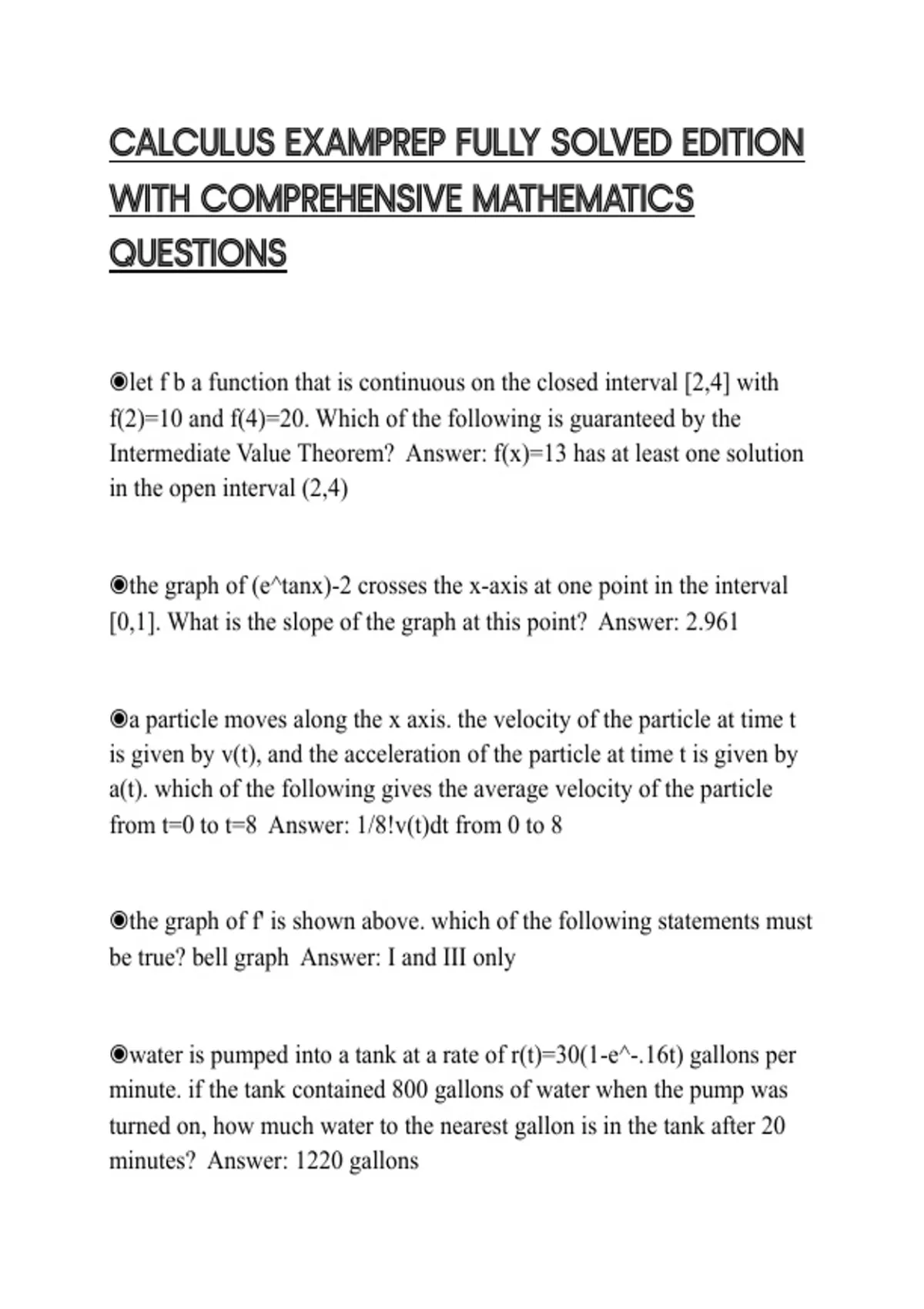 CALCULUS EXAMPREP FULLY SOLVED EDITION WITH COMPREHENSIVE MATHEMATICS QUESTIONS