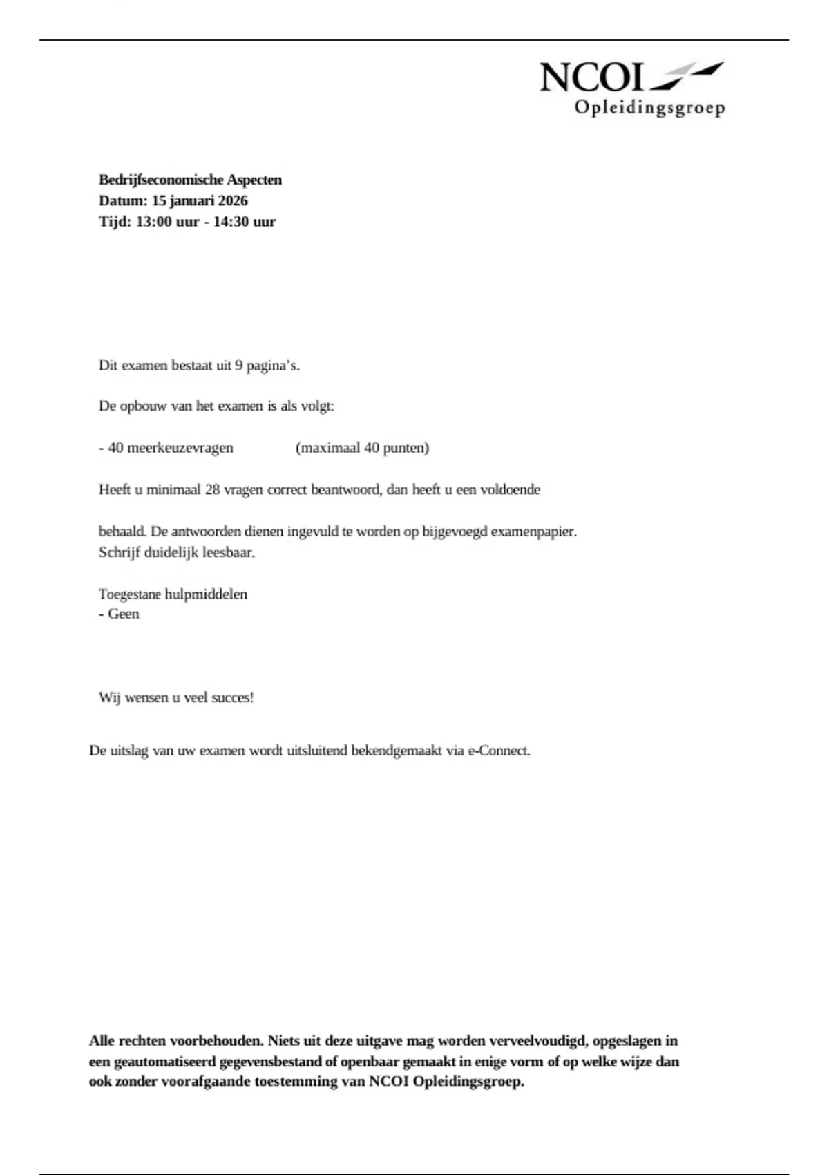 , ncoi tentamen bedrijfseconomische aspecten oefenvragen oefentoets 2026