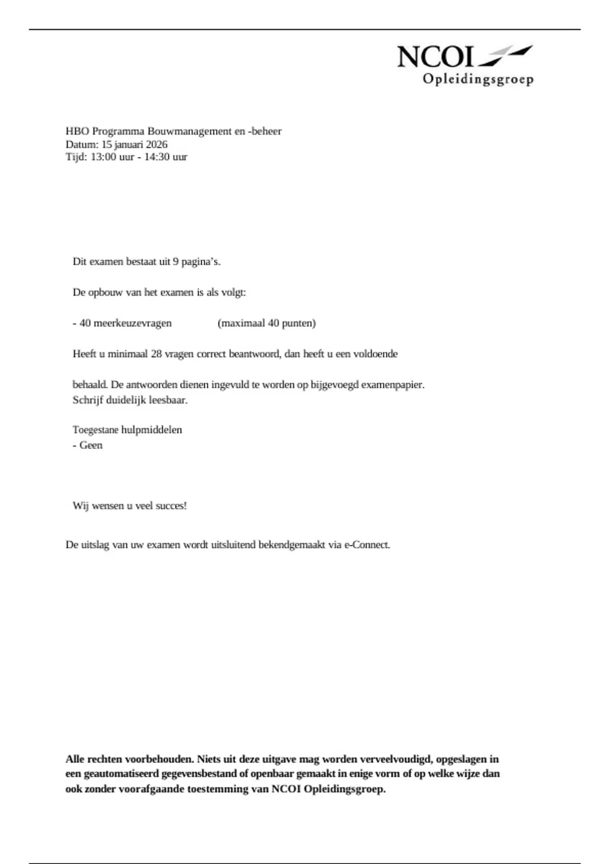 ,ncoi tentamen bedrijfseconomische aspecten oefenvragen oefentoets 2026 ncoi tentamen HBO Programma Bouwmanagement en -beheer