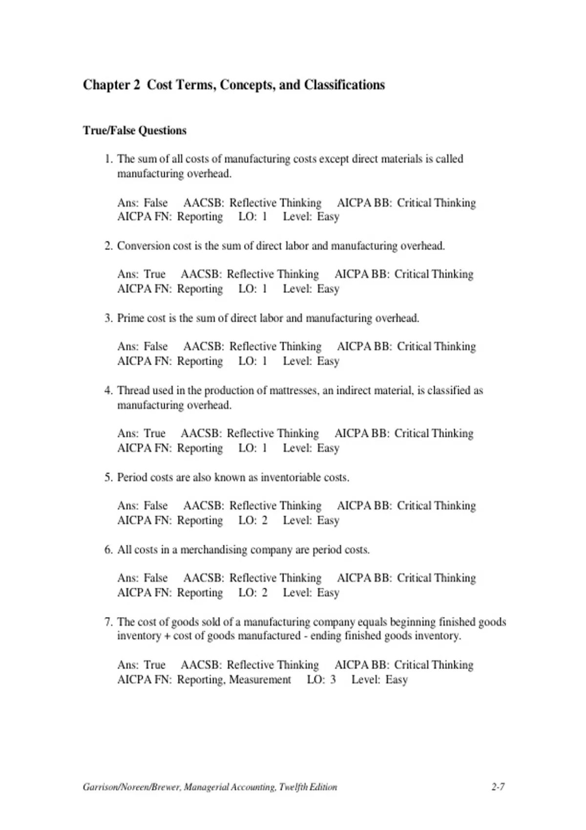 Garrison/Noreen/Brewer, Managerial Accounting, Twelfth Edition 2-7