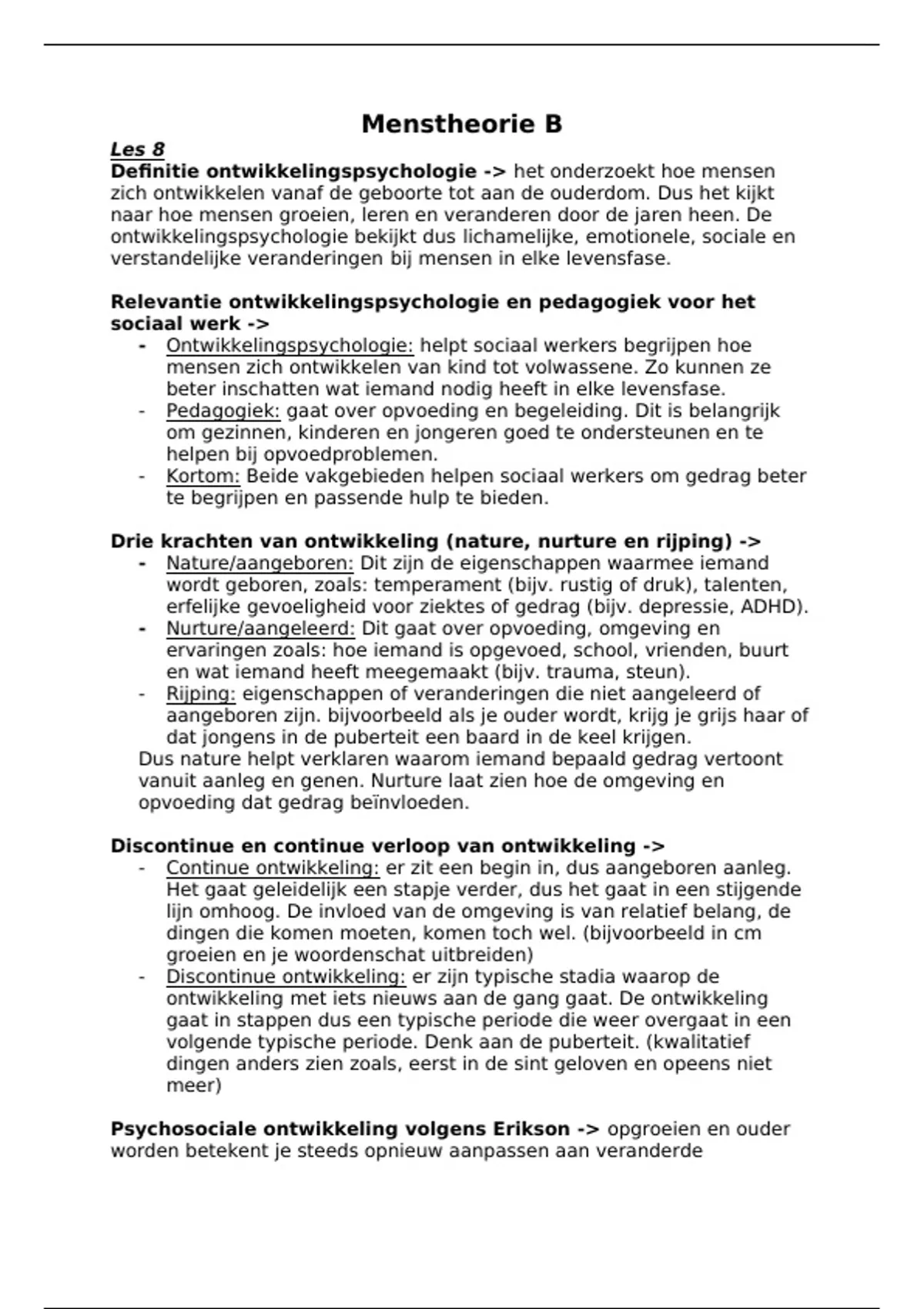 met deze samenvatting van menstheorie b heb ik een ruime voldoende gehaald in het eerste leerjaar.