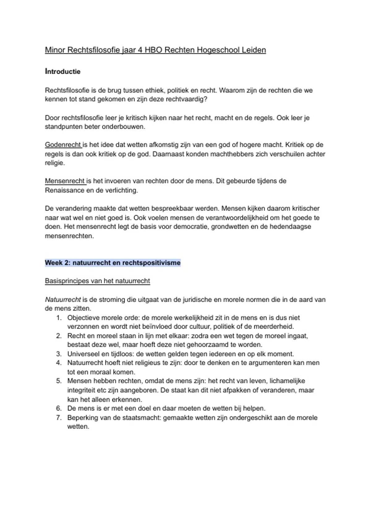Minor Rechtsfilosofie jaar 4 HBO Rechten Hogeschool Leiden