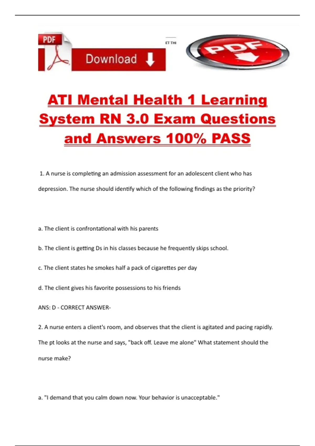 1. A nurse is completing an admission assessment for an adolescent client who has