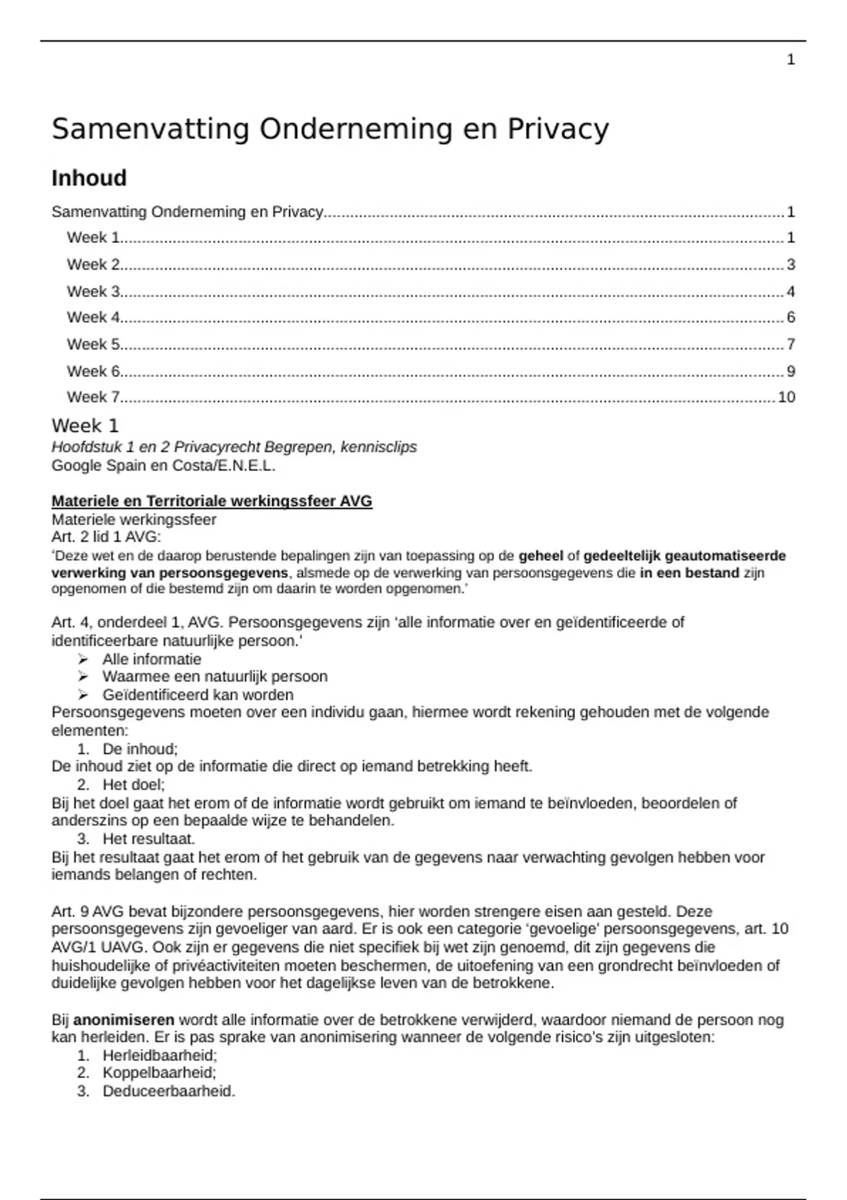 Samenvatting Onderneming en Privacy.........................................................................................................1
