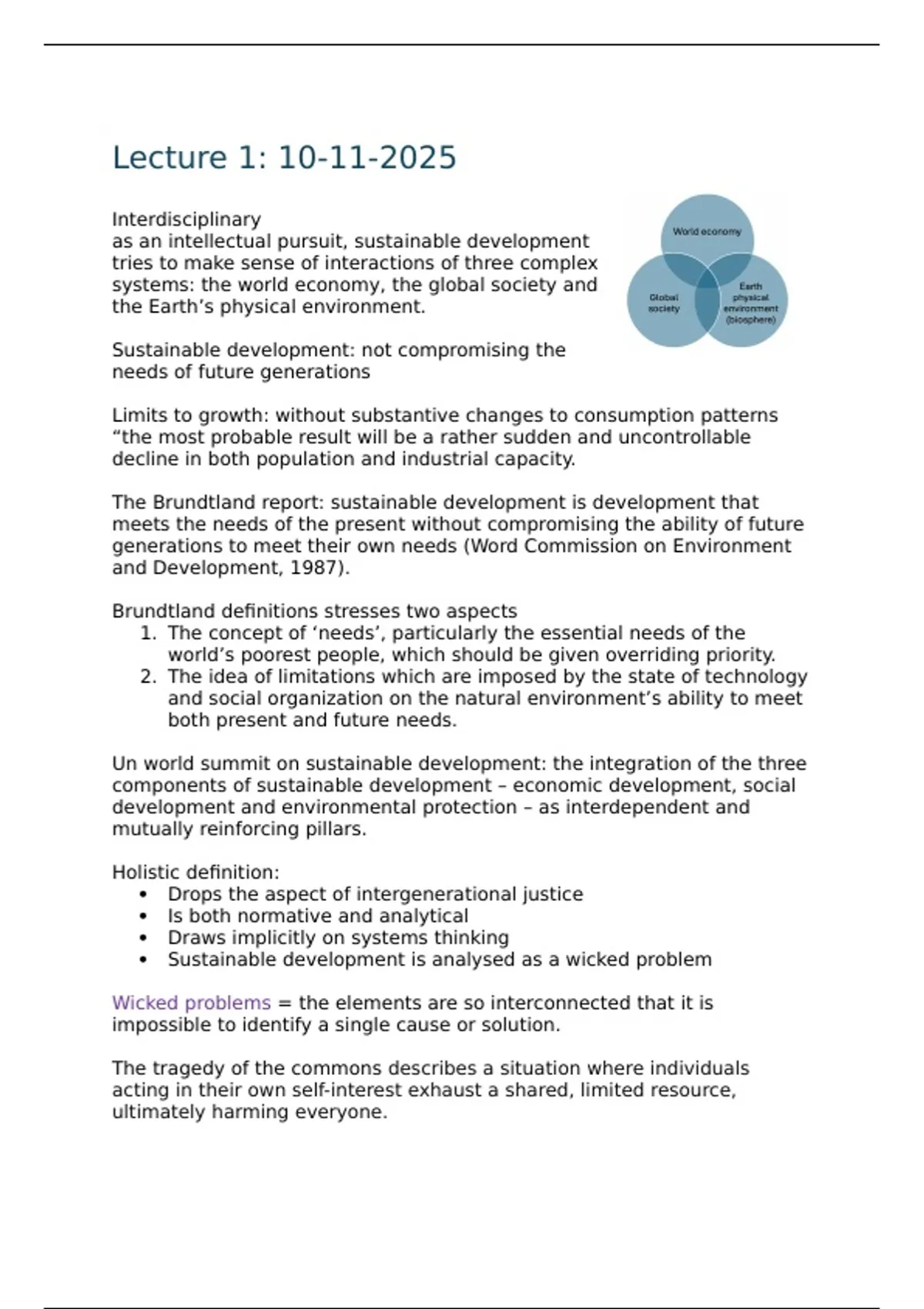 Notes of all lectures of the Master course Sustainability in Business and Economics