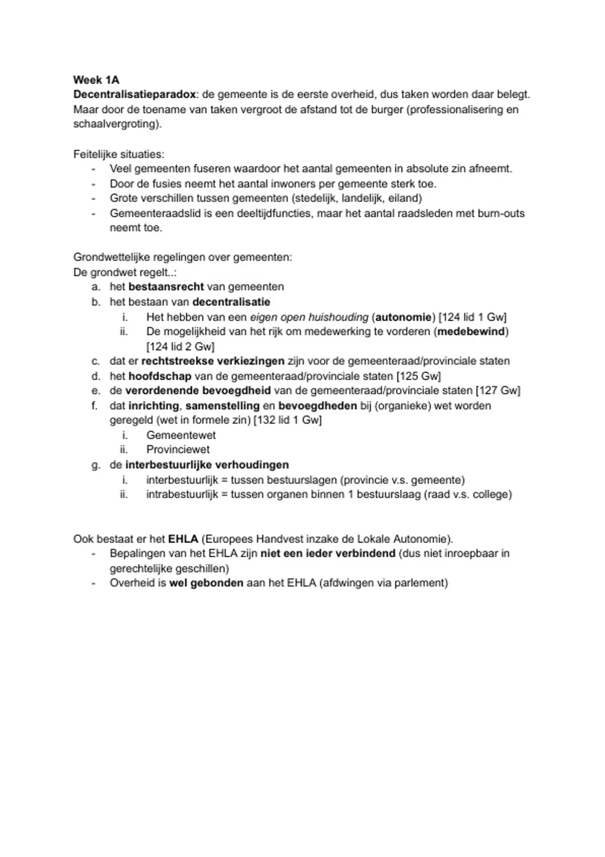 belangen). Alles wat in de Gemeentewet wordt bepaald is autonomie (art. 108 lid 2 Gemw).