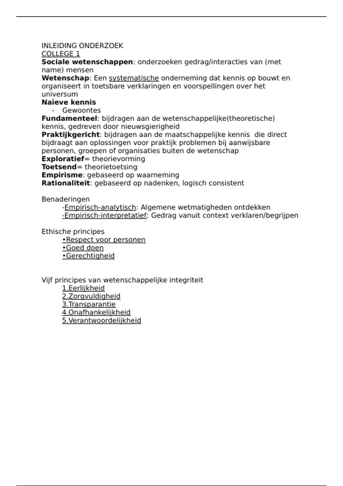 Goede korte Samenvatting hoorcolleges Inleiding onderzoek