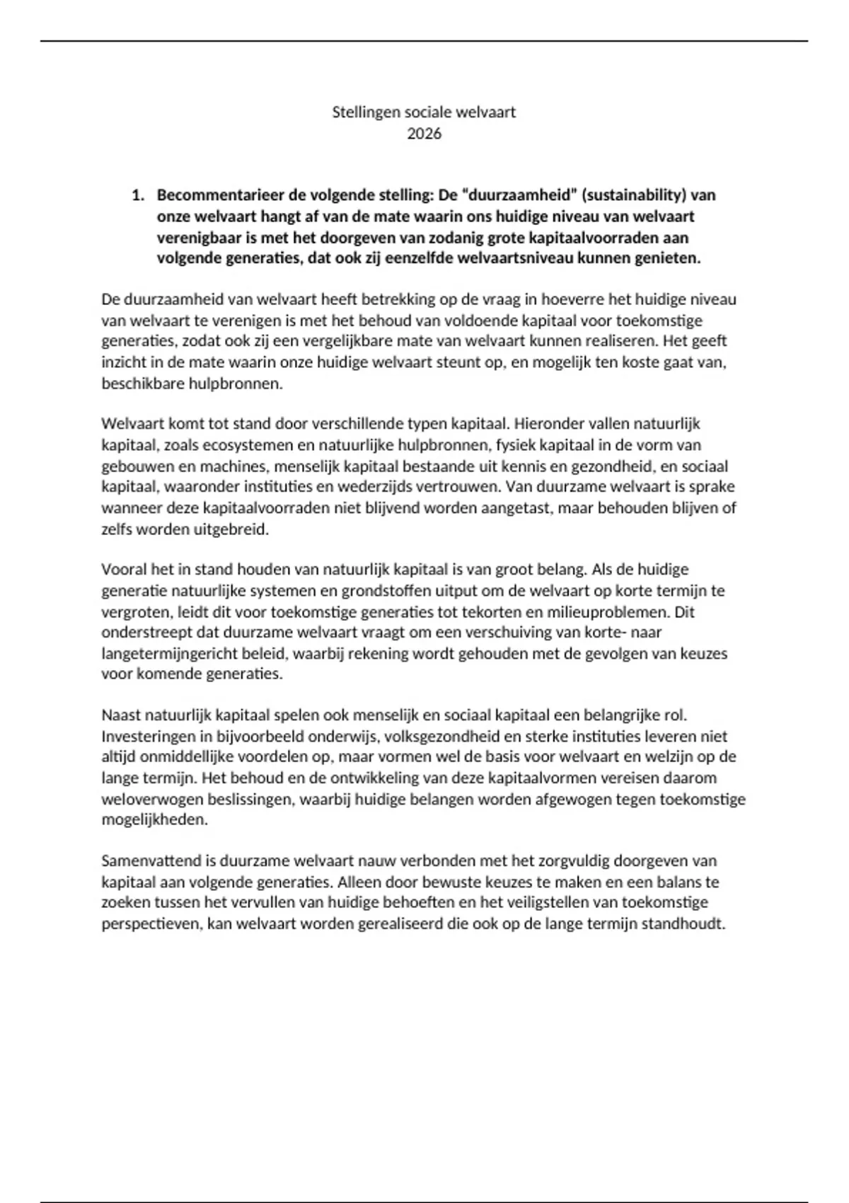 1. Becommentarieer de volgende stelling: De “duurzaamheid” (sustainability) van