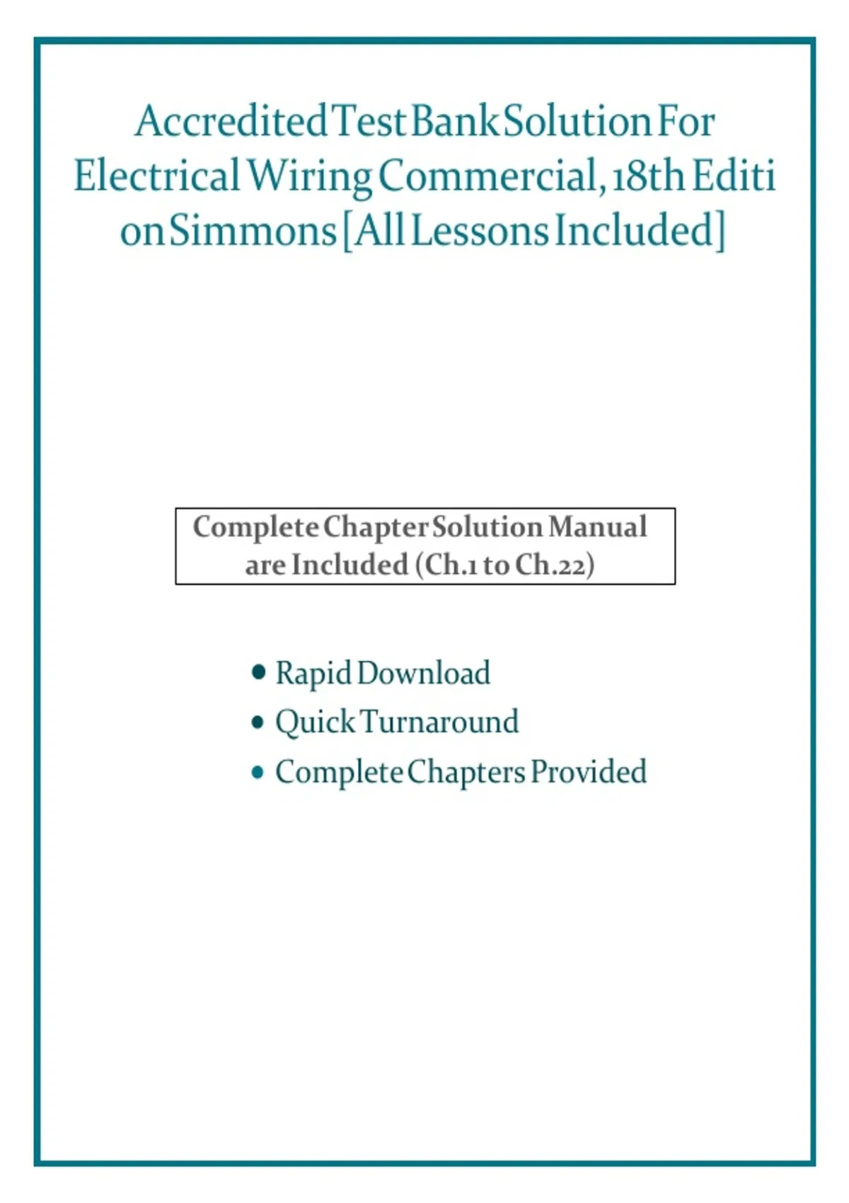 Accredited Test Bank Solutions — Electrical Wiring Commercial, 18th Edition — Simmons — (All Chapters Covered 1–22, Questions & Answers)