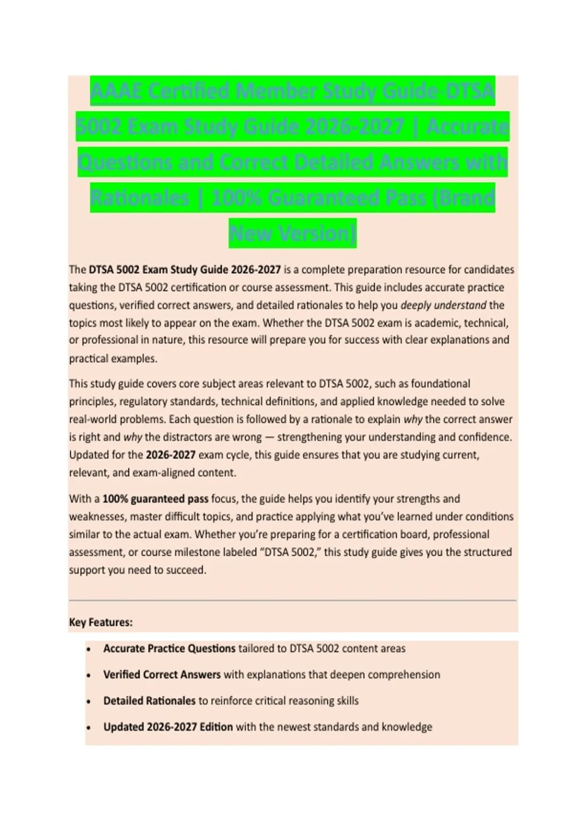 The DTSA 5002 Exam Study Guide 2026-2027 is a complete preparation resource for candidates