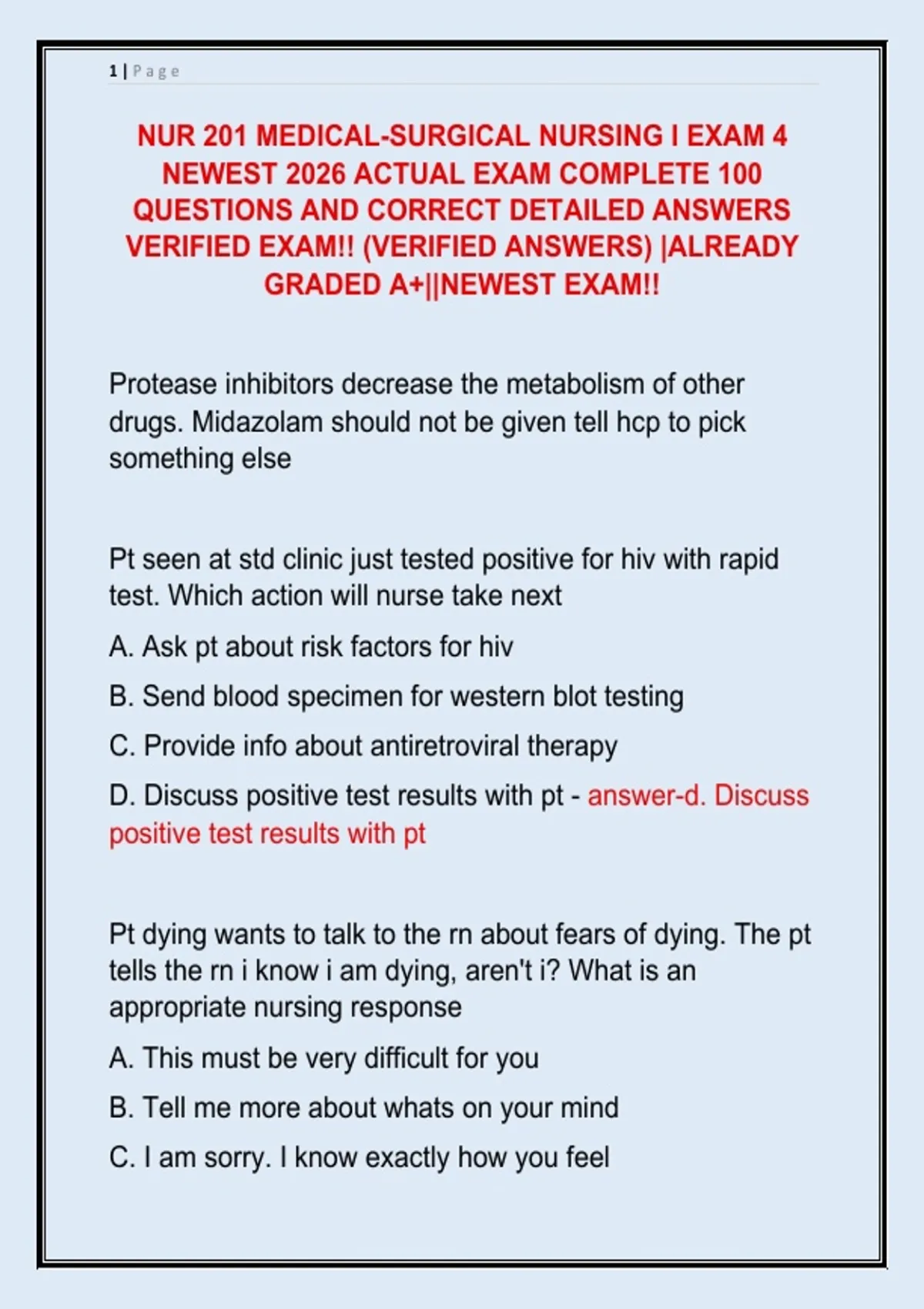 NUR 201 MEDICAL-SURGICAL NURSING I EXAM 4 NEWEST 2026 ACTUAL EXAM COMPLETE 100 QUESTIONS AND CORRECT DETAILED ANSWERS VERIFIED EXAM!! (VERIFIED ANSWERS) |ALREADY GRADED A+||NEWEST EXAM!!