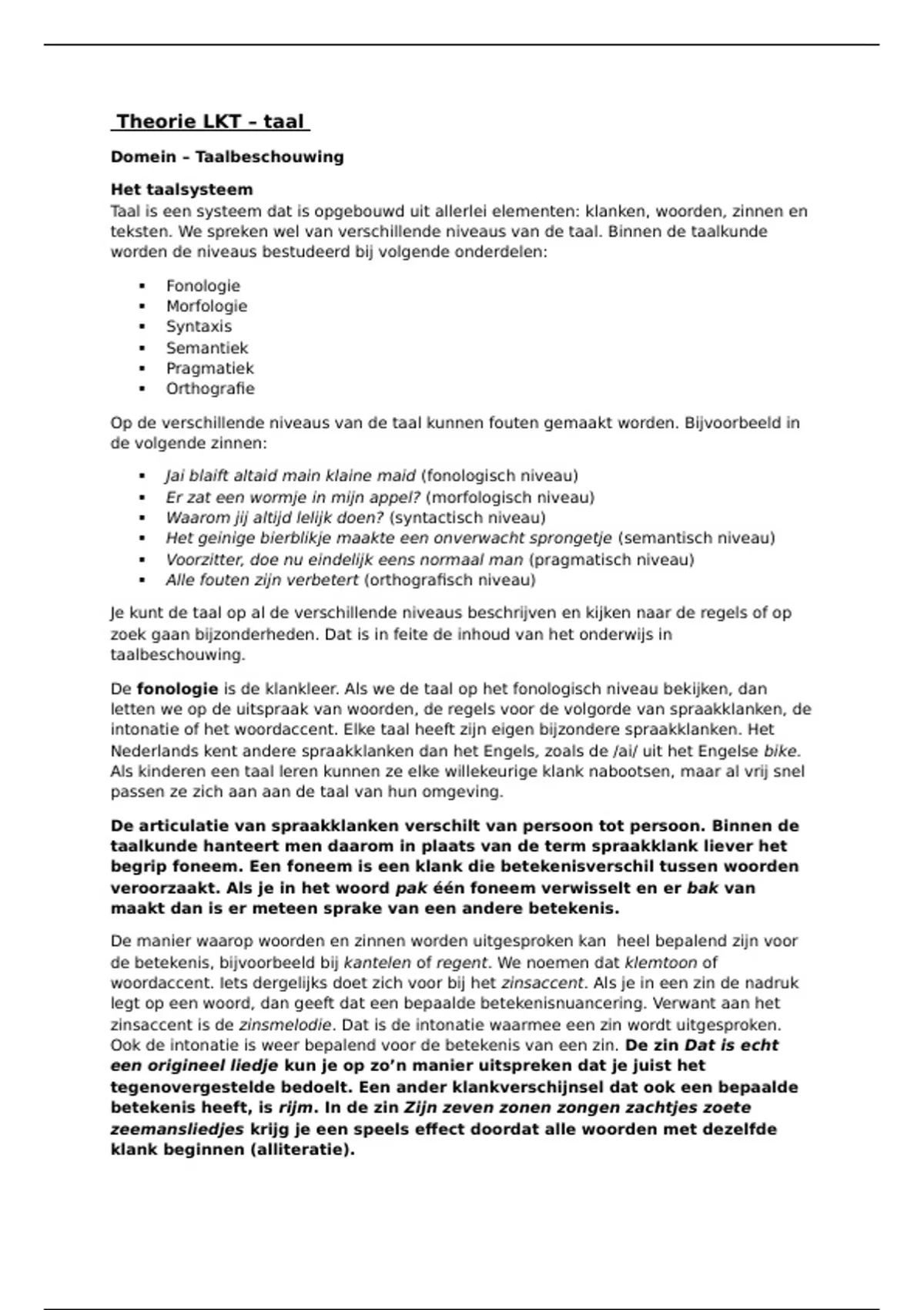 Een samenvatting van alle domeinen die van belang zijn voor de LKT taal. Voor elk domein komt de kennisbasis uitgebreid aan bod en er wordt ook gebruik gemaakt van context, waardoor het begrijpelijker is hoe theorie in de praktijk voorkomt.