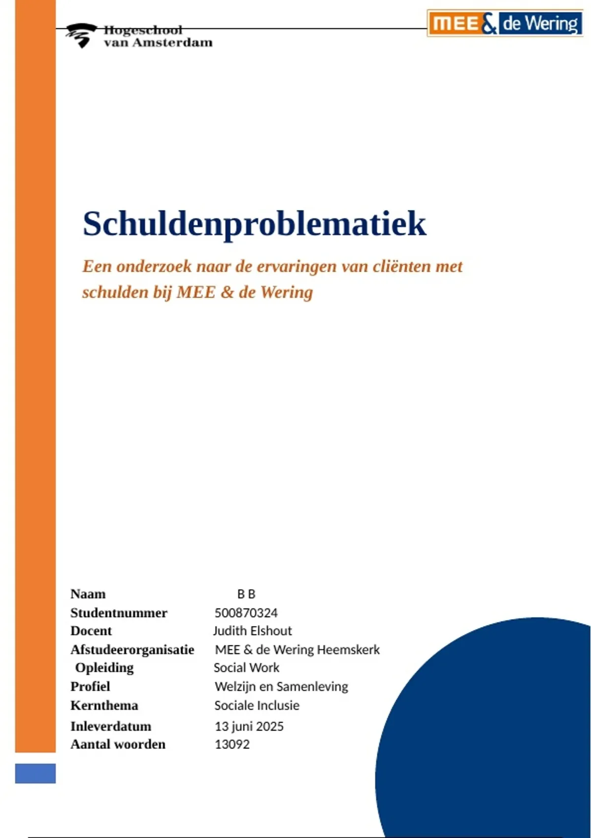 Wering. Het onderzoek heeft ervoor gezorgd dat mijn kennis over schuldenproblematiek is verbreed.