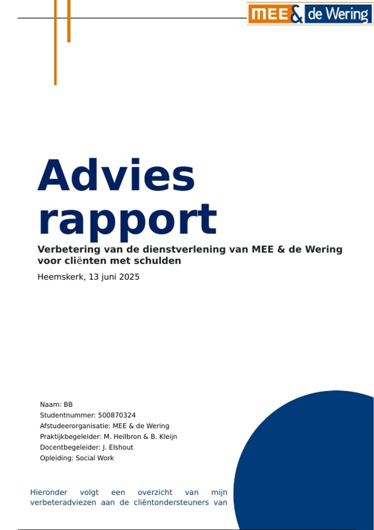 Afstudeerorganisatie: MEE & de Wering