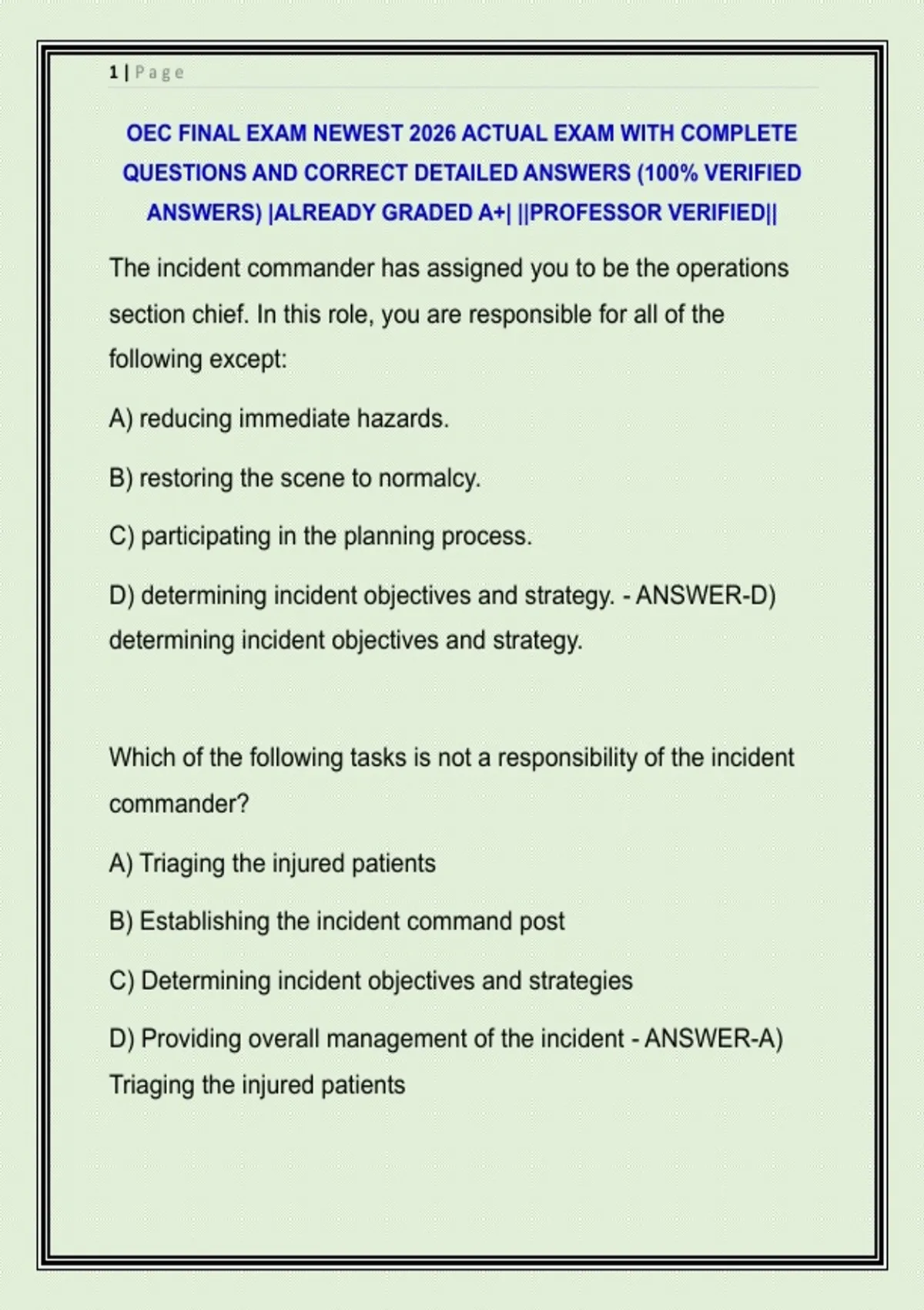 D) Providing overall management of the incident - ANSWER-A)