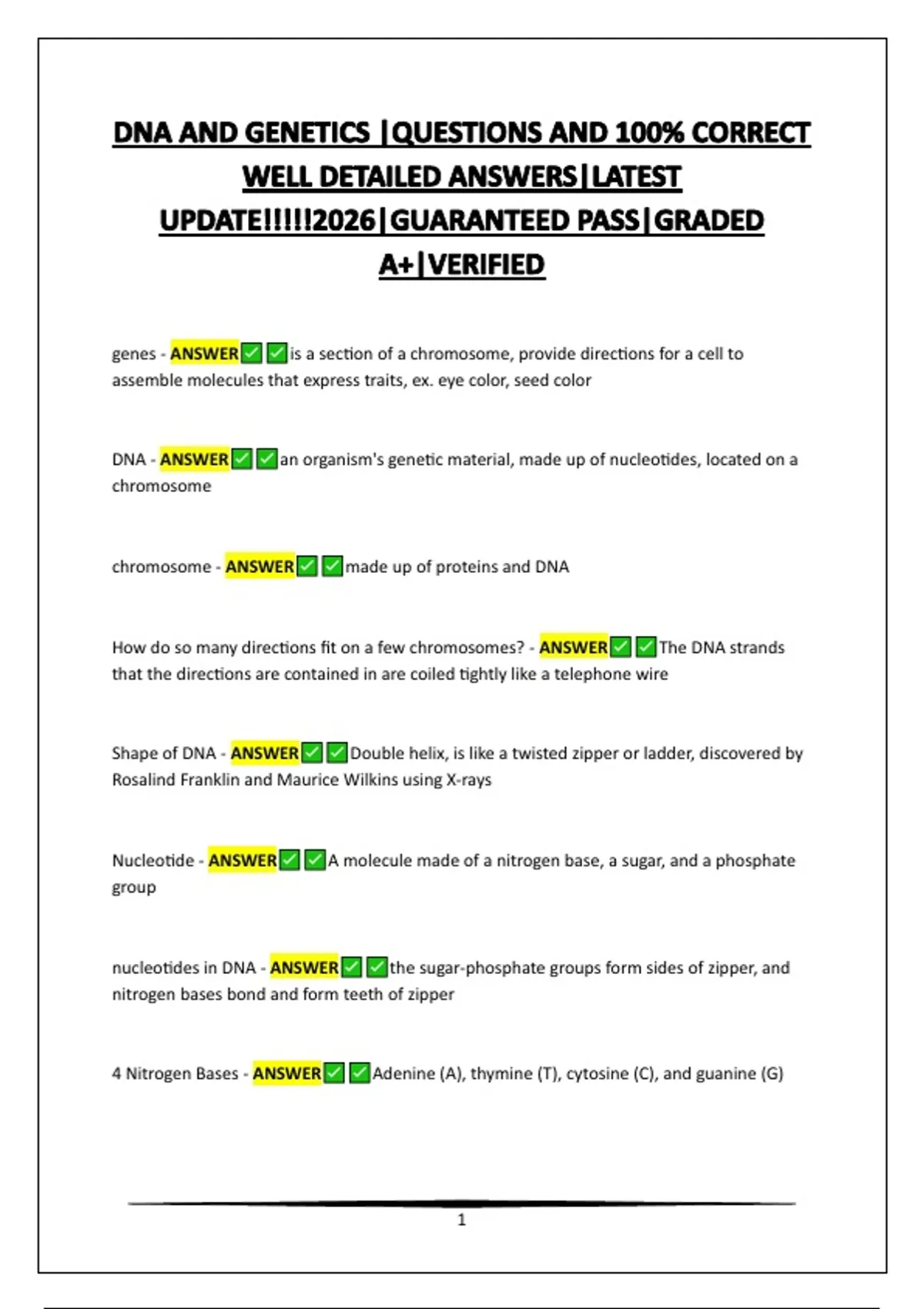 DNA AND GENETICS |QUESTIONS AND 100% CORRECT WELL DETAILED ANSWERS|LATEST UPDATE!!!!!2026|GUARANTEED PASS|GRADED A+|VERIFIED