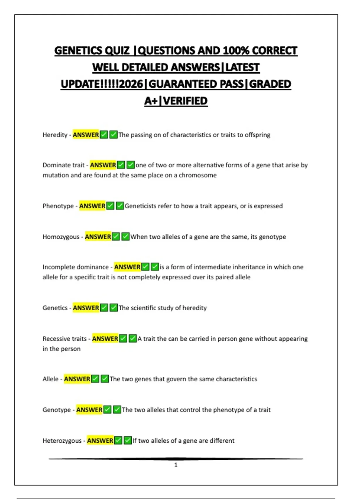 Genetics - ANSWER The scientific study of heredity