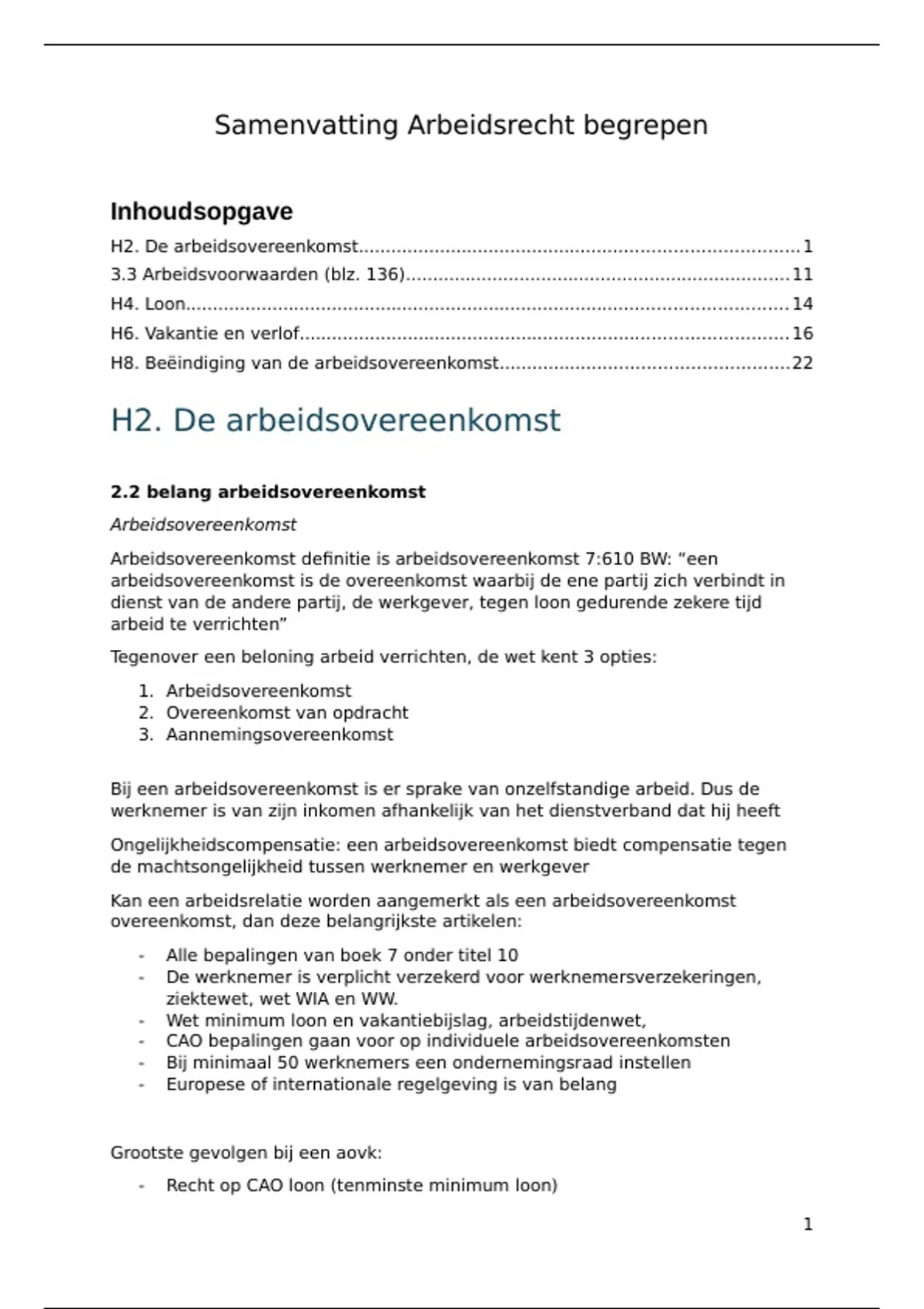 Samenvatting van het boek Arbeidsrecht begrepen. Deze samenvatting bevat alle stof die tijdens de colleges van de minor RVNJ is gegeven voor het vak arbeidsrecht. Met deze samenvatting heb ik het tentamen afgesloten met een 9.4!