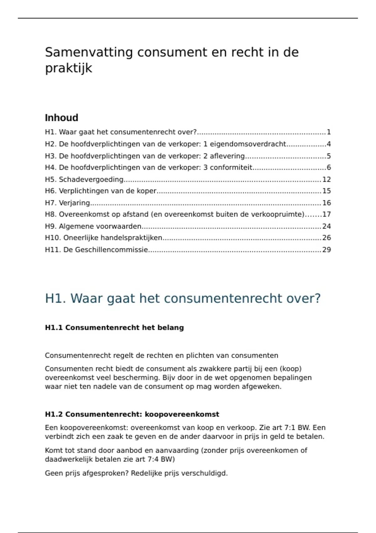 H1. Waar gaat het consumentenrecht over?..........................................................1