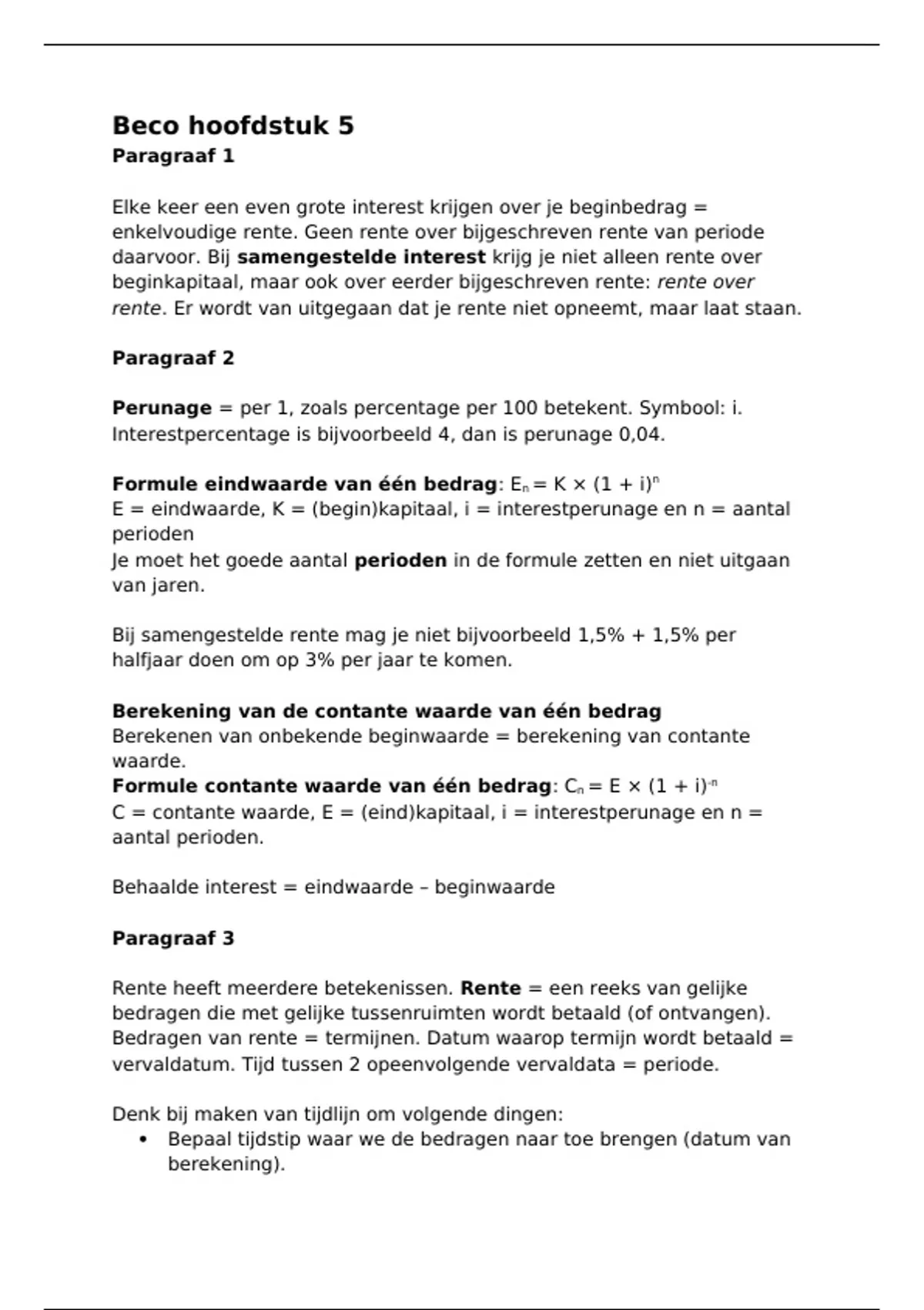 C = contante waarde, E = (eind)kapitaal, i = interestperunage en n =