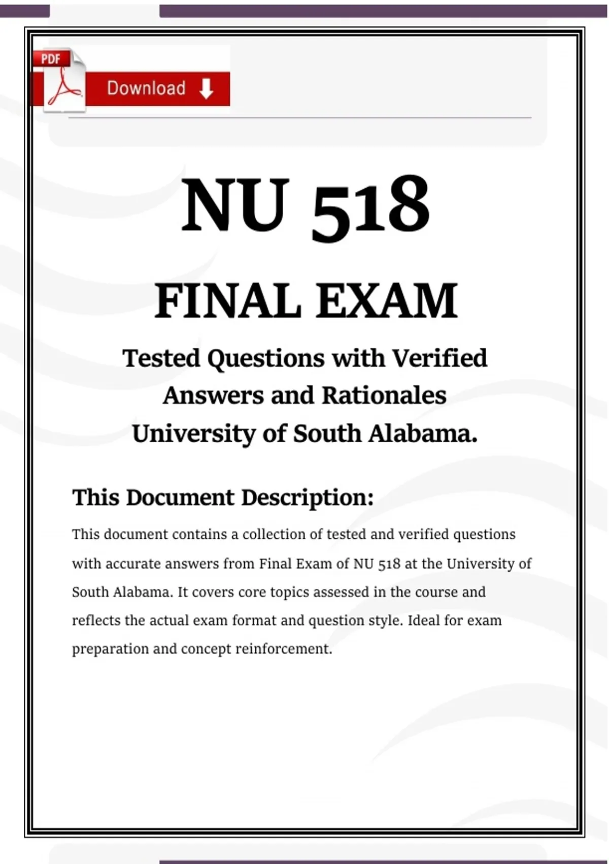 NU 518 – Final Exam (Advanced Nursing Course) – Verified Complete Exam Pack With Answers & Rationales