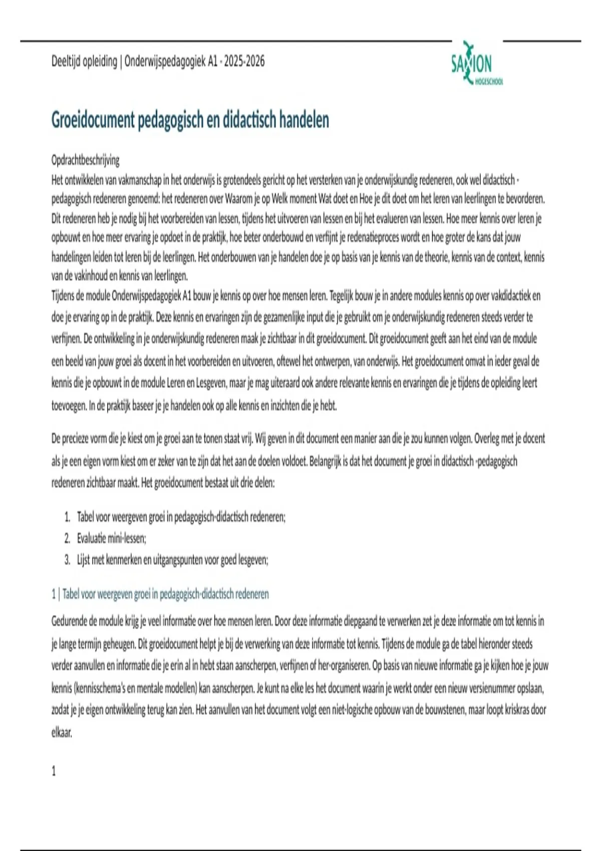 1 | Tabel voor weergeven groei in pedagogisch-didactisch redeneren