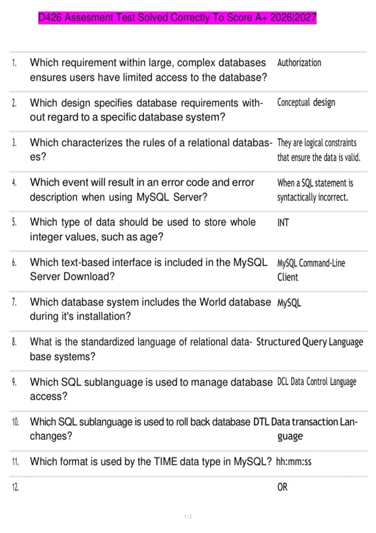 D426 Assesment Test Solved Correctly To Score A+ 2026|2027