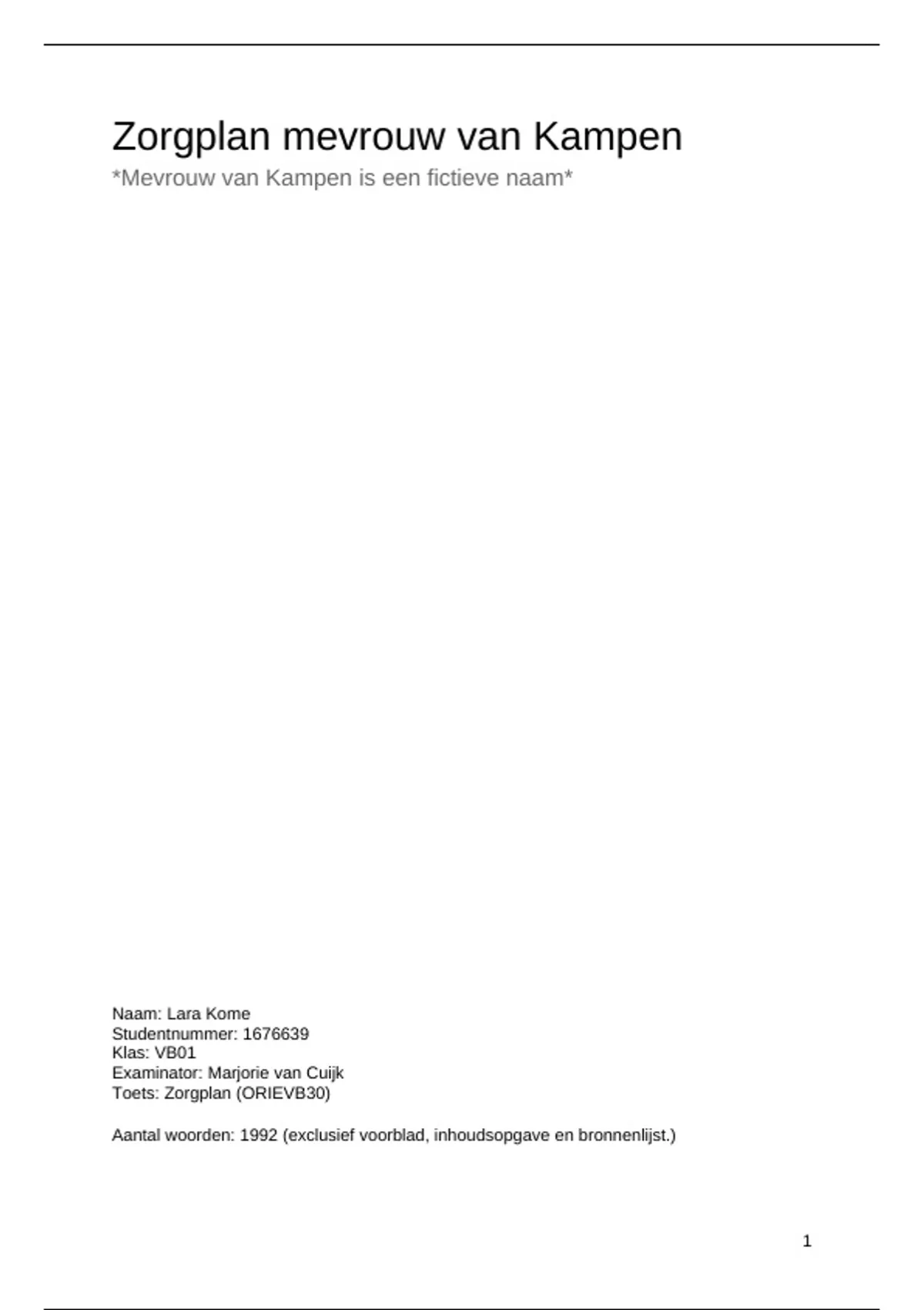 Zorgplan geschreven voor de han jaar 1 verpleegkunde met een bedachte casus. Hierin zijn 2 PESDI's uitgewerkt en o.a. kwadrant van Eisenhower toegepast.
