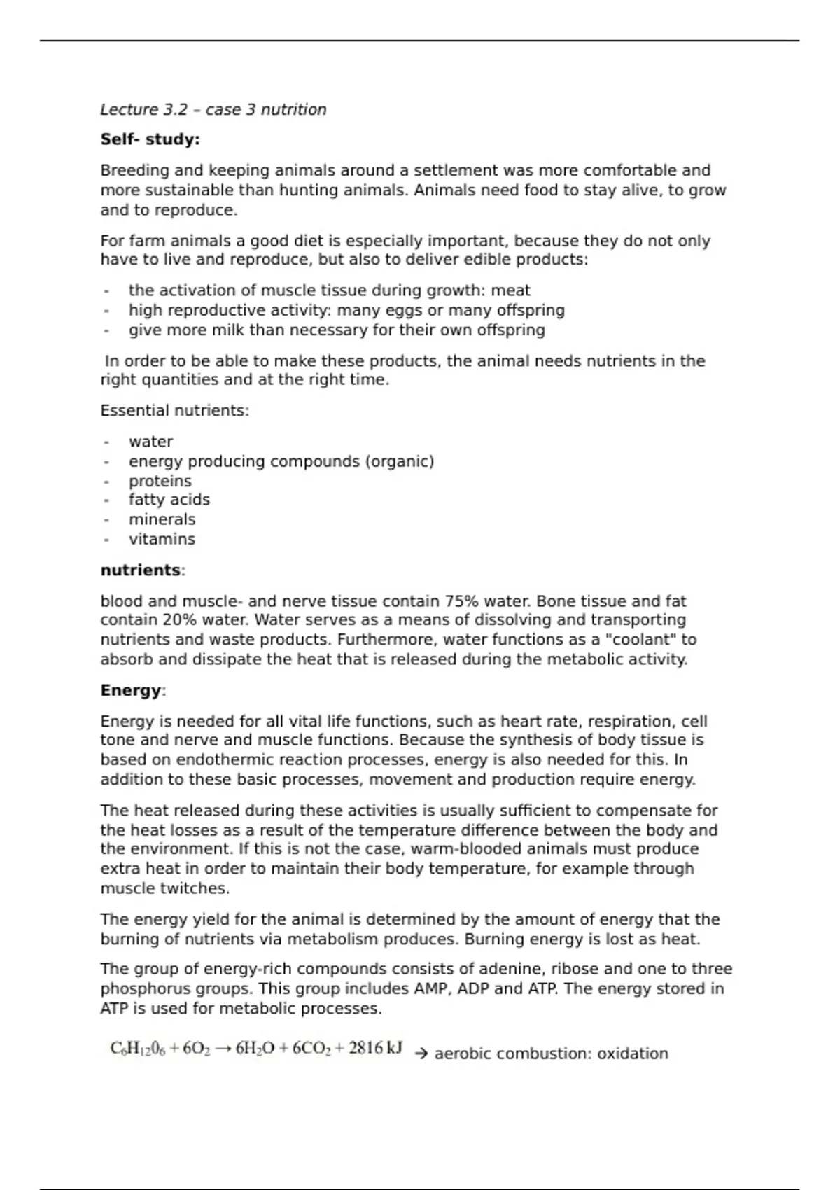 Summary of 9 pages for the course Biology of Domestic Animals at WUR (nutrition)