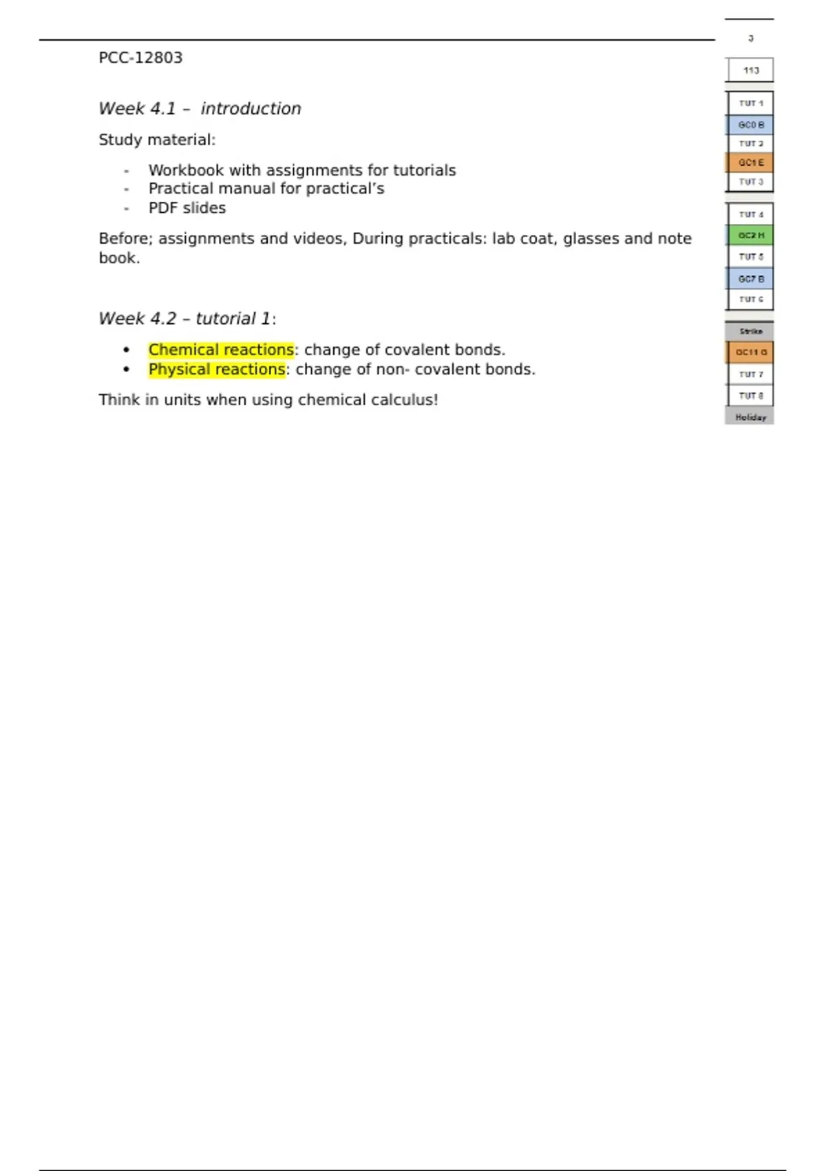 Before; assignments and videos, During practicals: lab coat, glasses and note