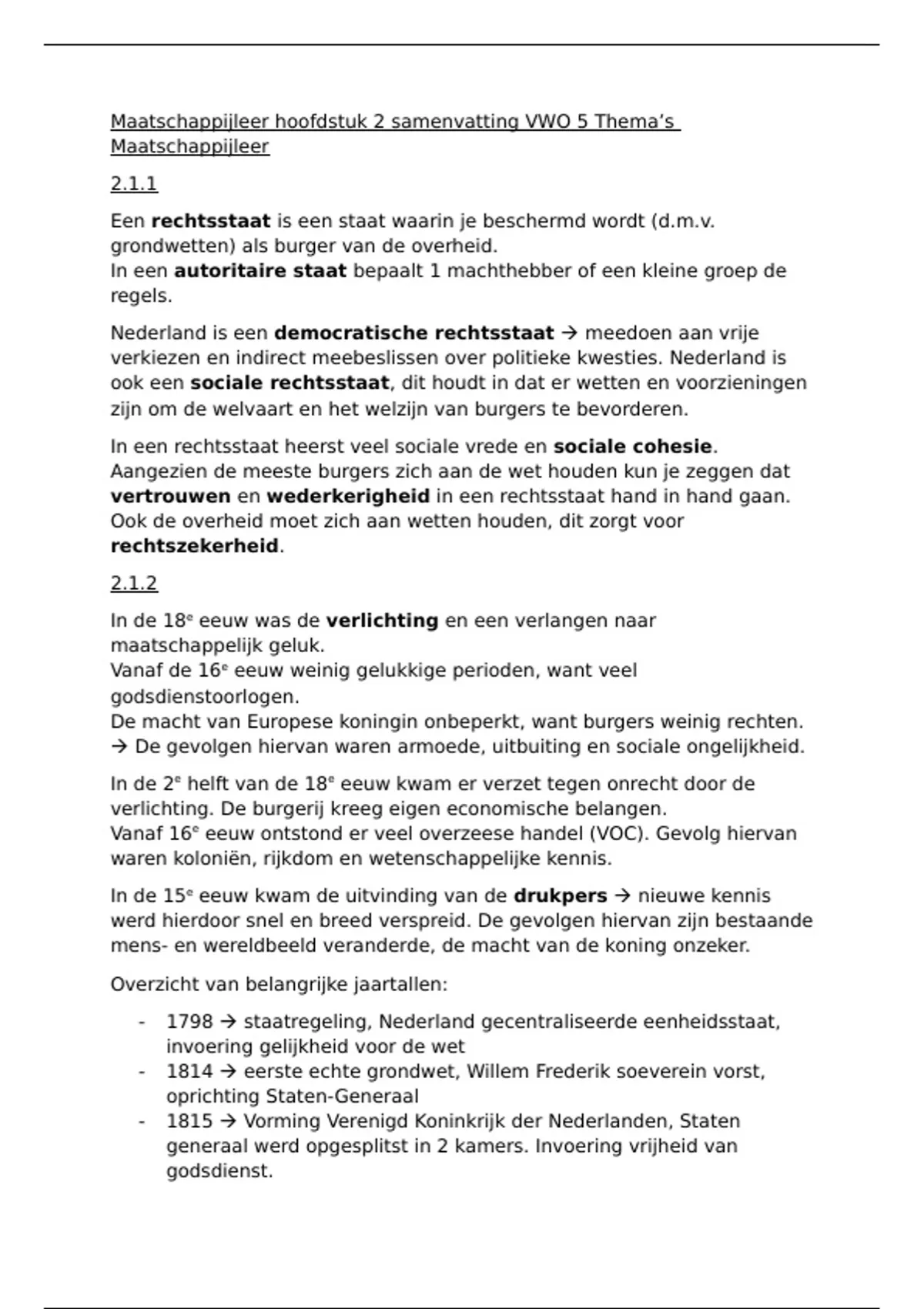 Maatschappijleer hoofdstuk 2 samenvatting VWO 5