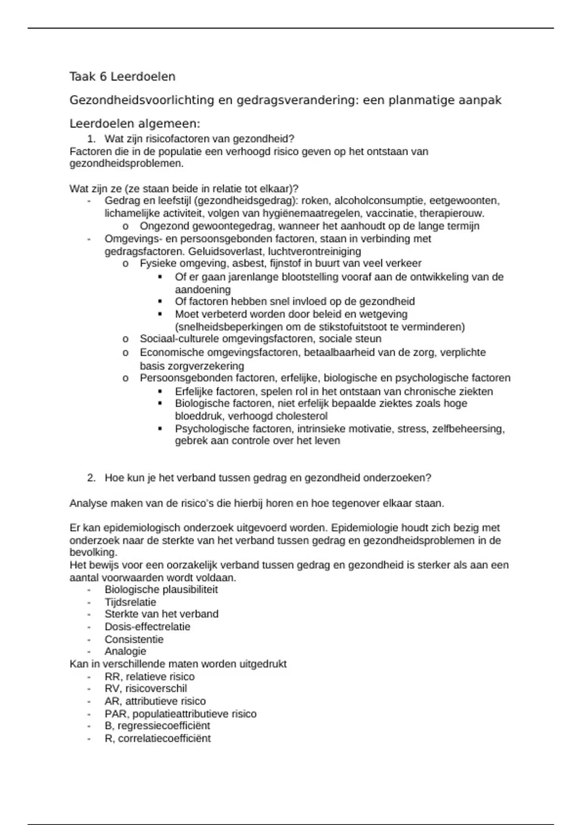 Samenvatting taak 6 uitwerking bedreigingen van gezondheid