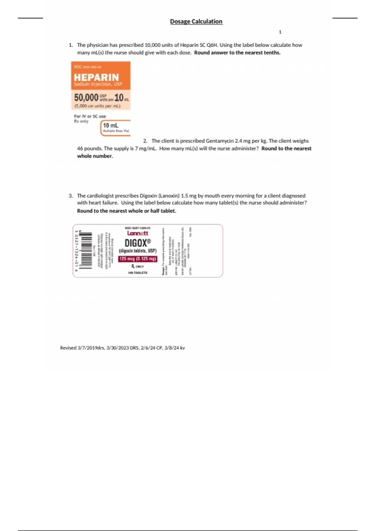 Dosage Calculation Practice Packet for Nursing (NUR 101)Dosage Calculation Practice Packet for Nursing (NUR 101)