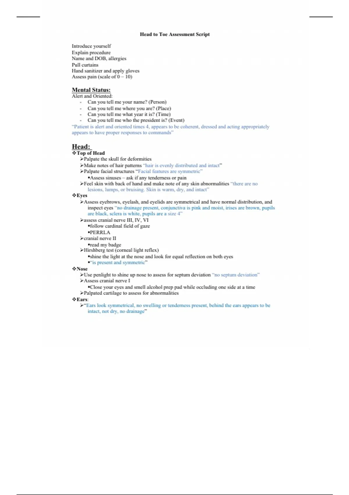 Head to Toe Assessment Script for Nursing NUR 101_ Practical GuideHead to Toe Assessment Script for Nursing NUR 101_ Practical Guide