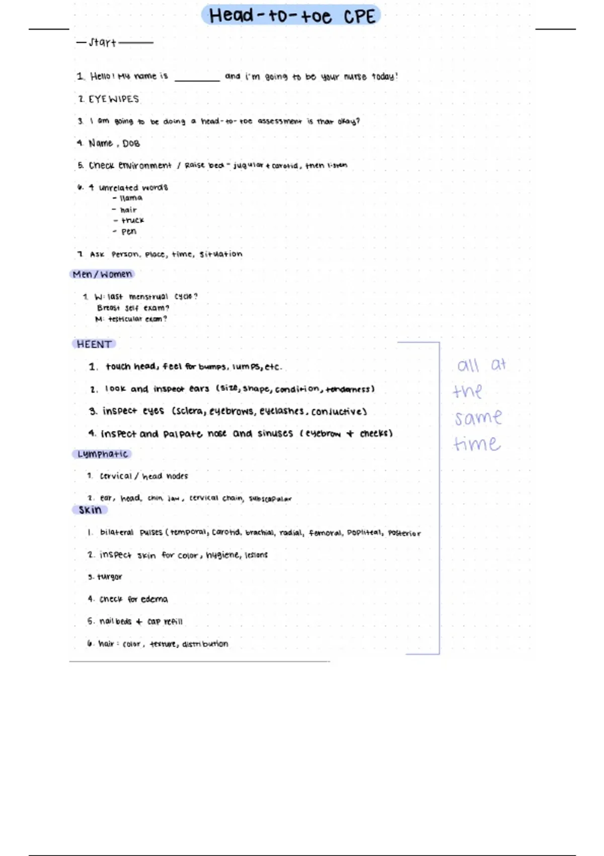 Head-to-Toe Assessment Guide for CPE ClassHead-to-Toe Assessment Guide for CPE Class